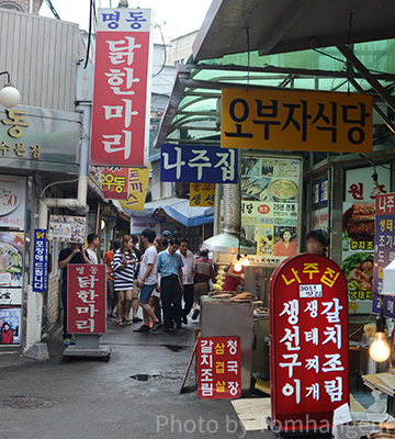 東大門総合市場近く、鍾路6街の焼魚・タッカンマリ通り