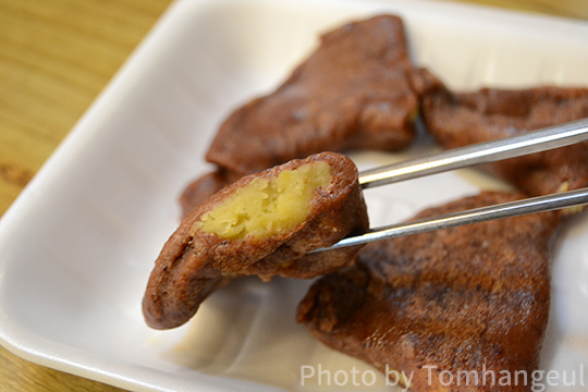 後述のそばのお焼きと一緒に注文して、盛り合わせのように食べる様子は、市場を訪れた方々のSNSにもアップされています。ススブクミは2,000~3,000ウォン。